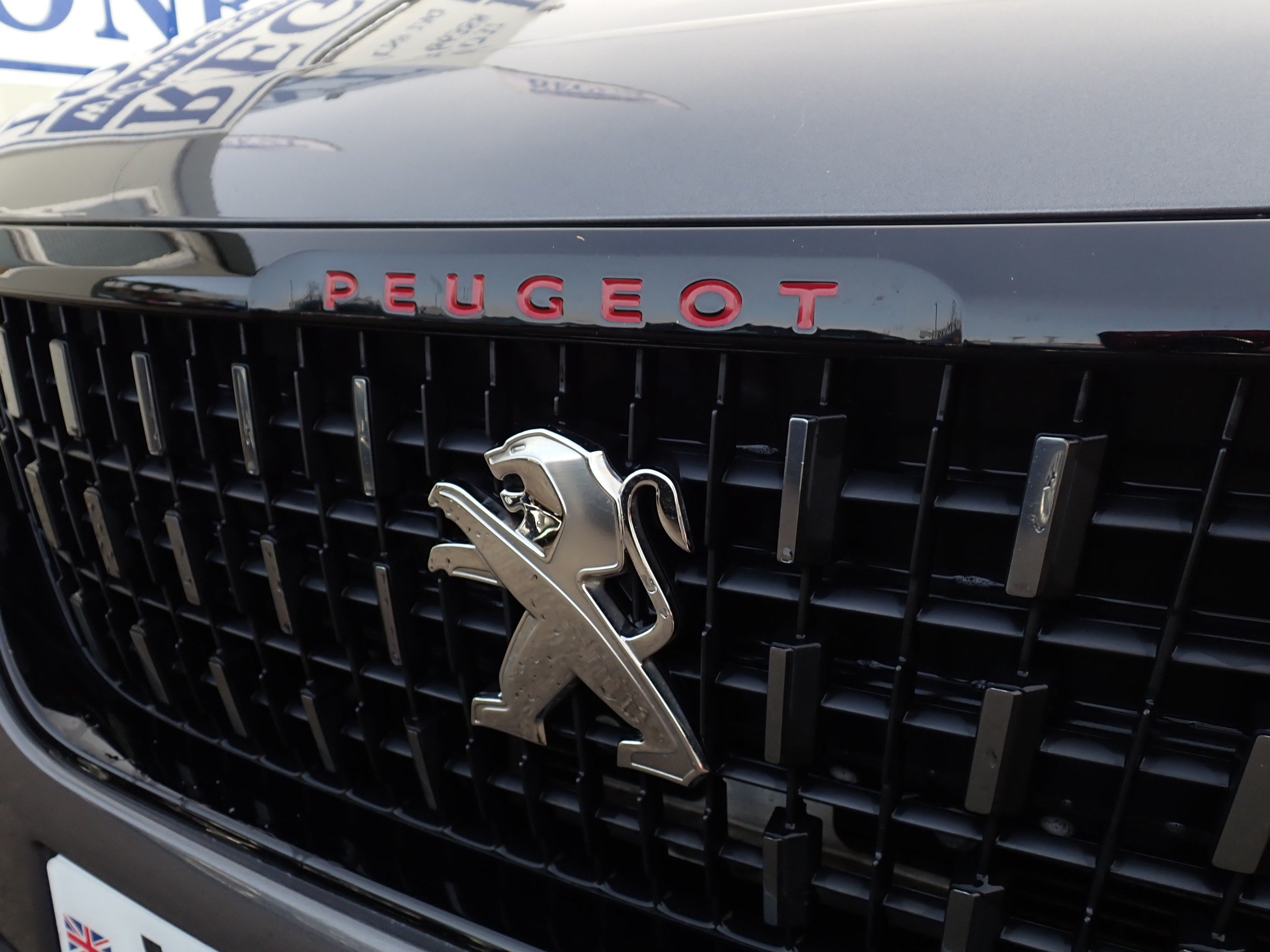 - Black Chrome Radiator Grille with Embossed Pendant Design - Gloss Black Surround and Red Peugeot Lettering